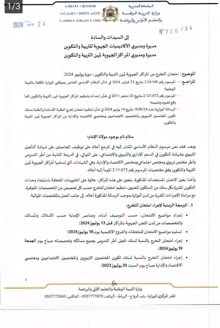 امتحان التخرج من المراكز الجهوية لمهن التربية والتكوين