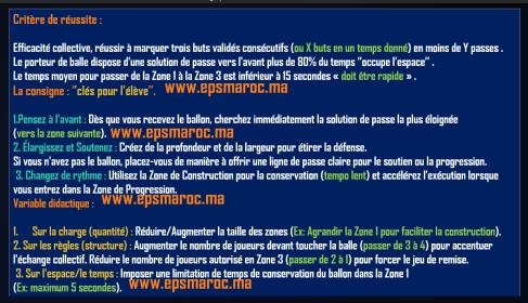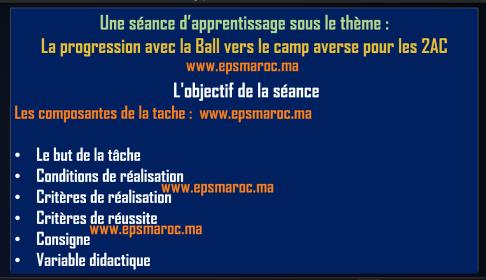 Une séance d’apprentissage sous le thème : La progression avec la Ball vers le camp averse pour les 2AC