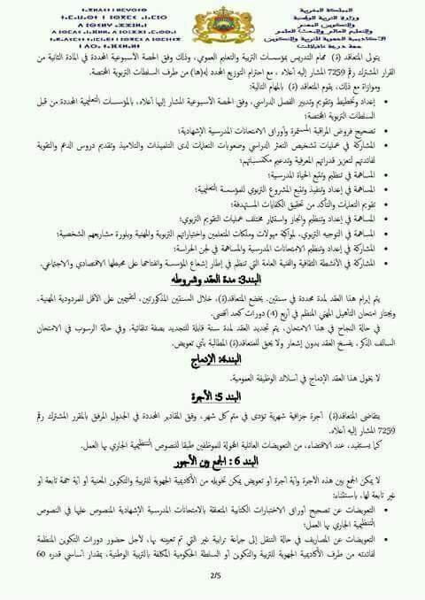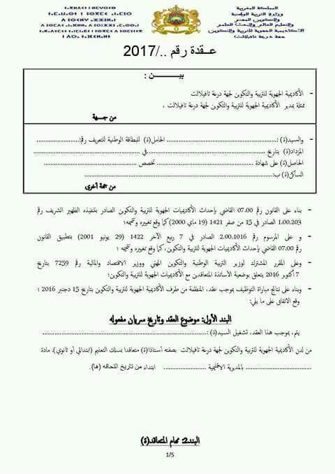 مضامين البنود التي سيتم توقيعها من قبل الناجحين في مباريات التوظيف بموجب عقود دورة يونيو 2017