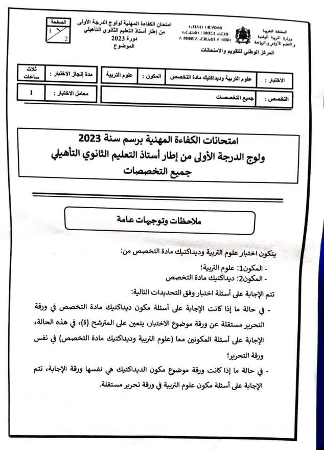 امتحان الكفاءة المهنية لولوج الدرجة الأولى من إطار أستاذ التعليم الثانوي التأهيلي- دورة 2023 ( يوليوز 2024 )