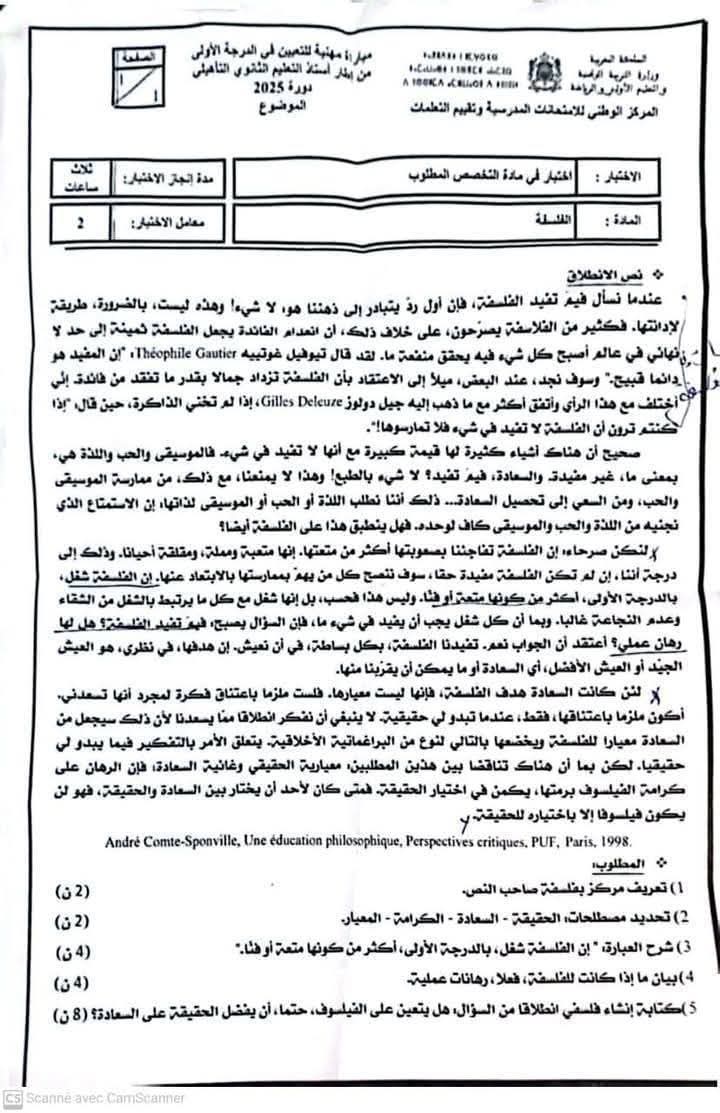 مواضيع امتحانات الترقية للدرجة الأولى (إطار أستاذ التعليم الثانوي التأهيلي) .. دورة 2025