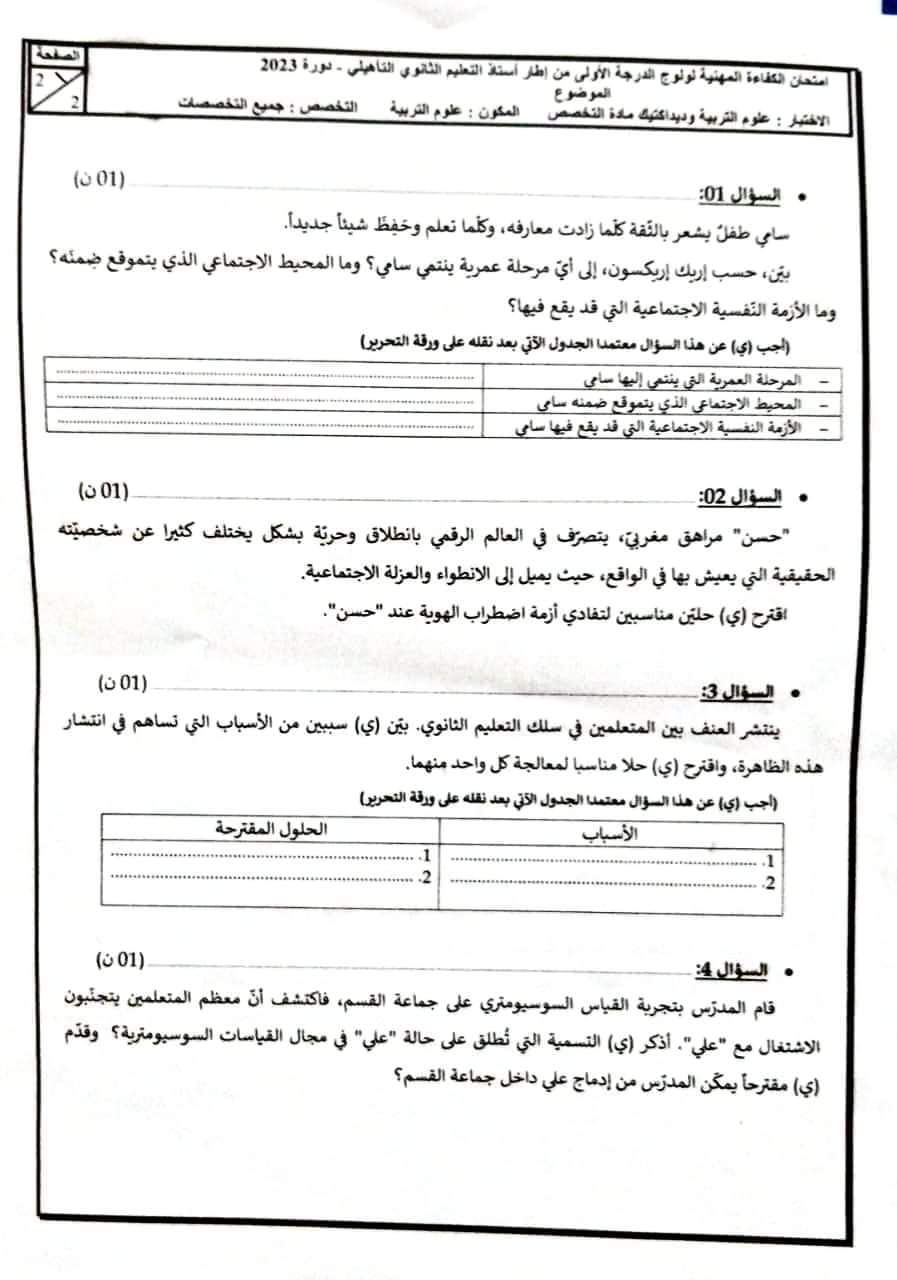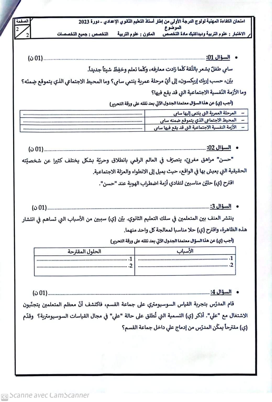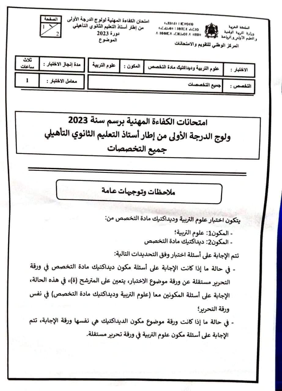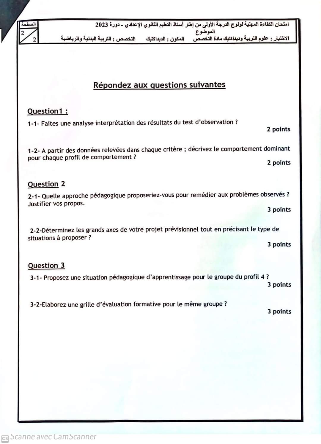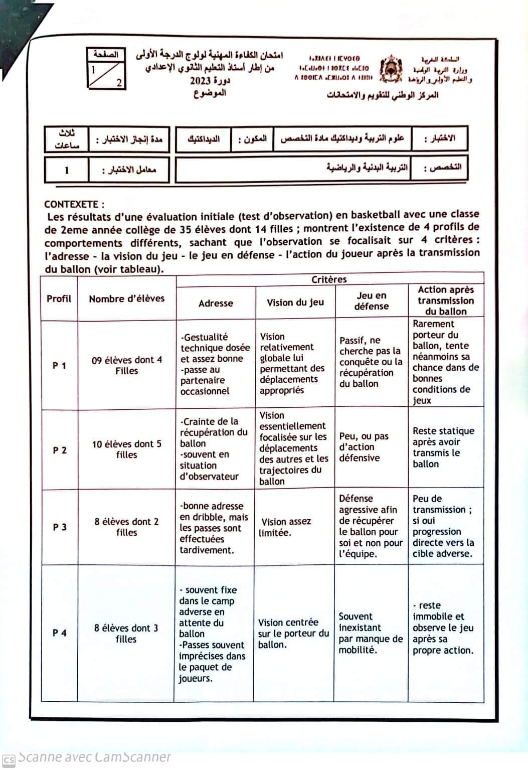 مواضيع امتحانات الكفاءة المهنية لمادة التربية البدنية والرياضية بالسلكين الاعدادي و التأهيلي برسم سنة 2023.