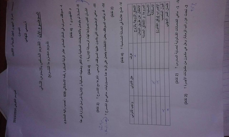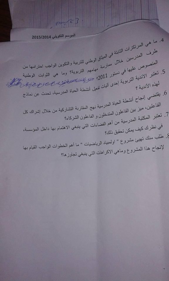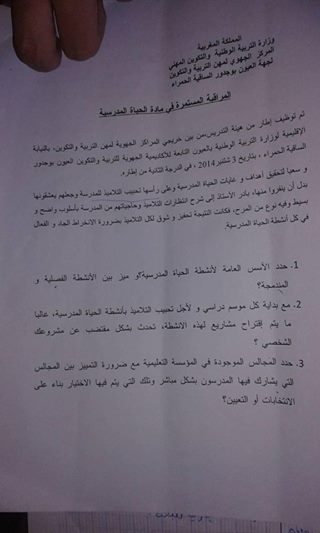 فروض المراقبة المستمرة -الحياة المدرسية الاستاذ السممي- المركز الجهوي للتربية و التكوين لجهة العيون بوجدورالساقية الحمراء