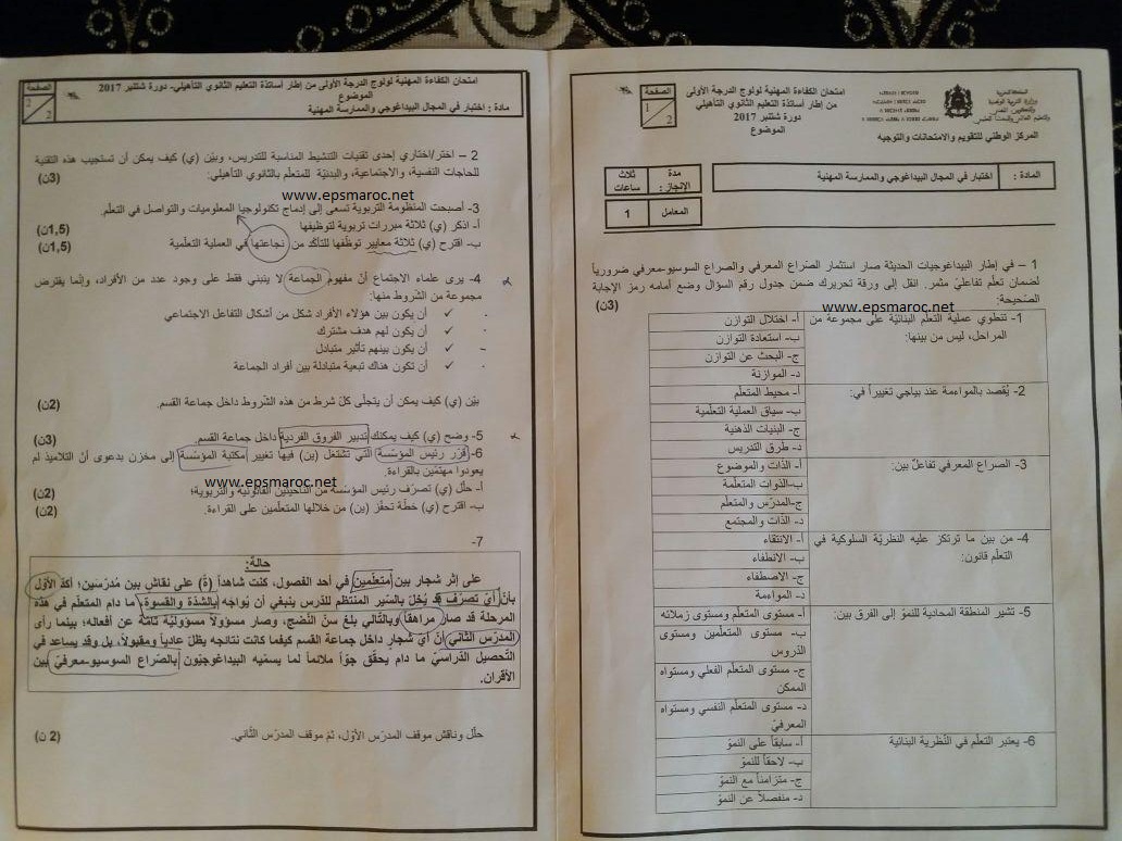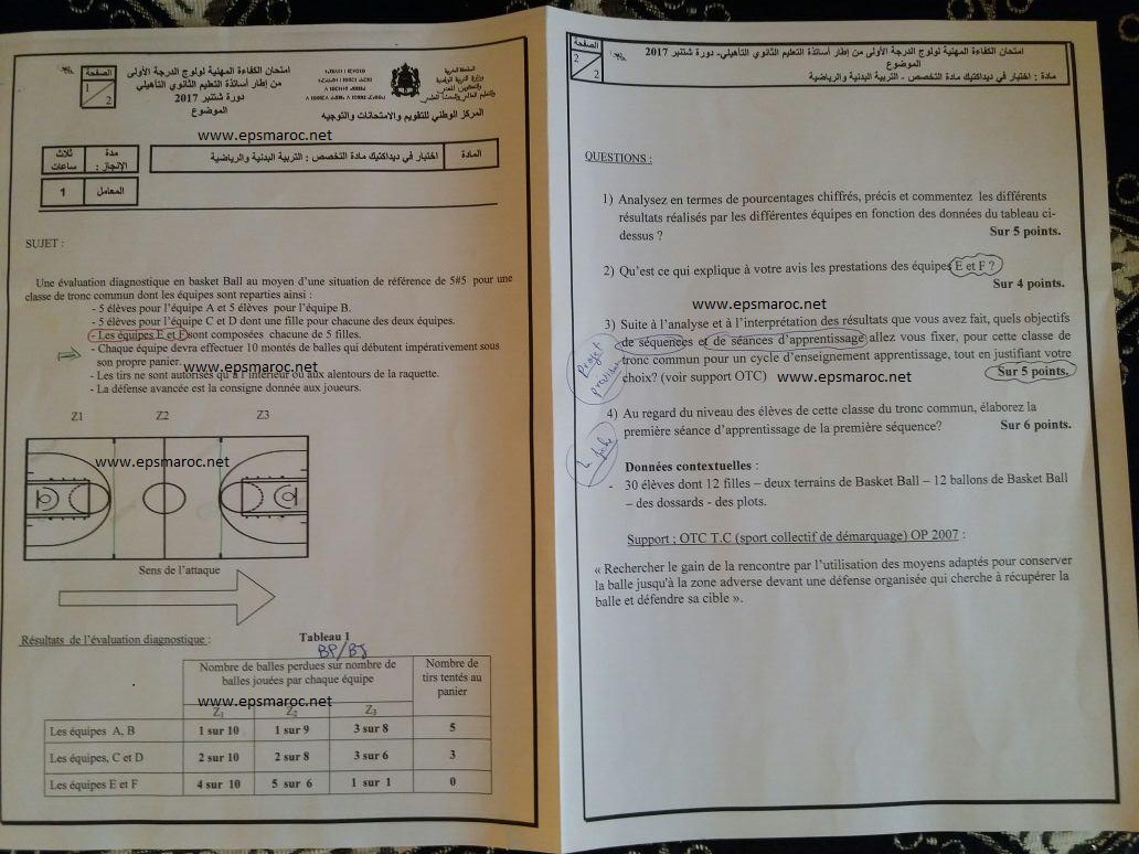 امتحان الكفاءة المهنية لولوج الدرجة الاولى من اطار استاد التعليم الثانوي التاهيلي دورة شتنبر2017 اختبارفي المجال البيداغوجي و الممارسة المهنية واختبار في مادة التخصص شعبة مادة التربية البدنية و الرياضة