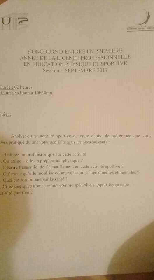 افتراضي Licence professionnelle metiers d’ensegnement les Épreuves Écrites Éducation physique et sportive