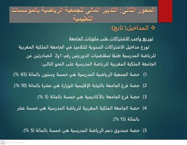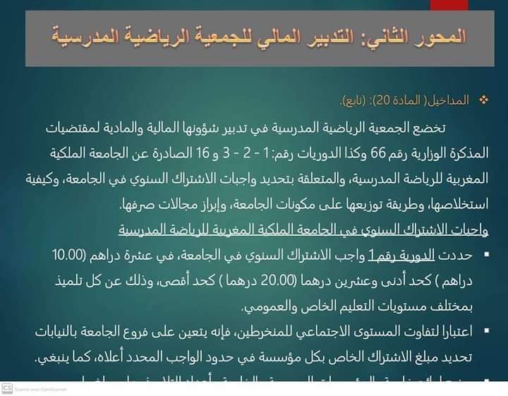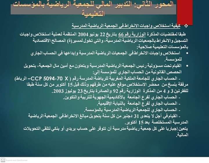 التدبير المالي والمحاسباتي للجمعيات الرياضية المدرسية